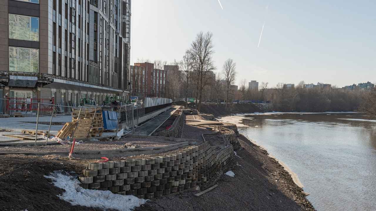 Идет отделка фасадов и благоустройство набережной.