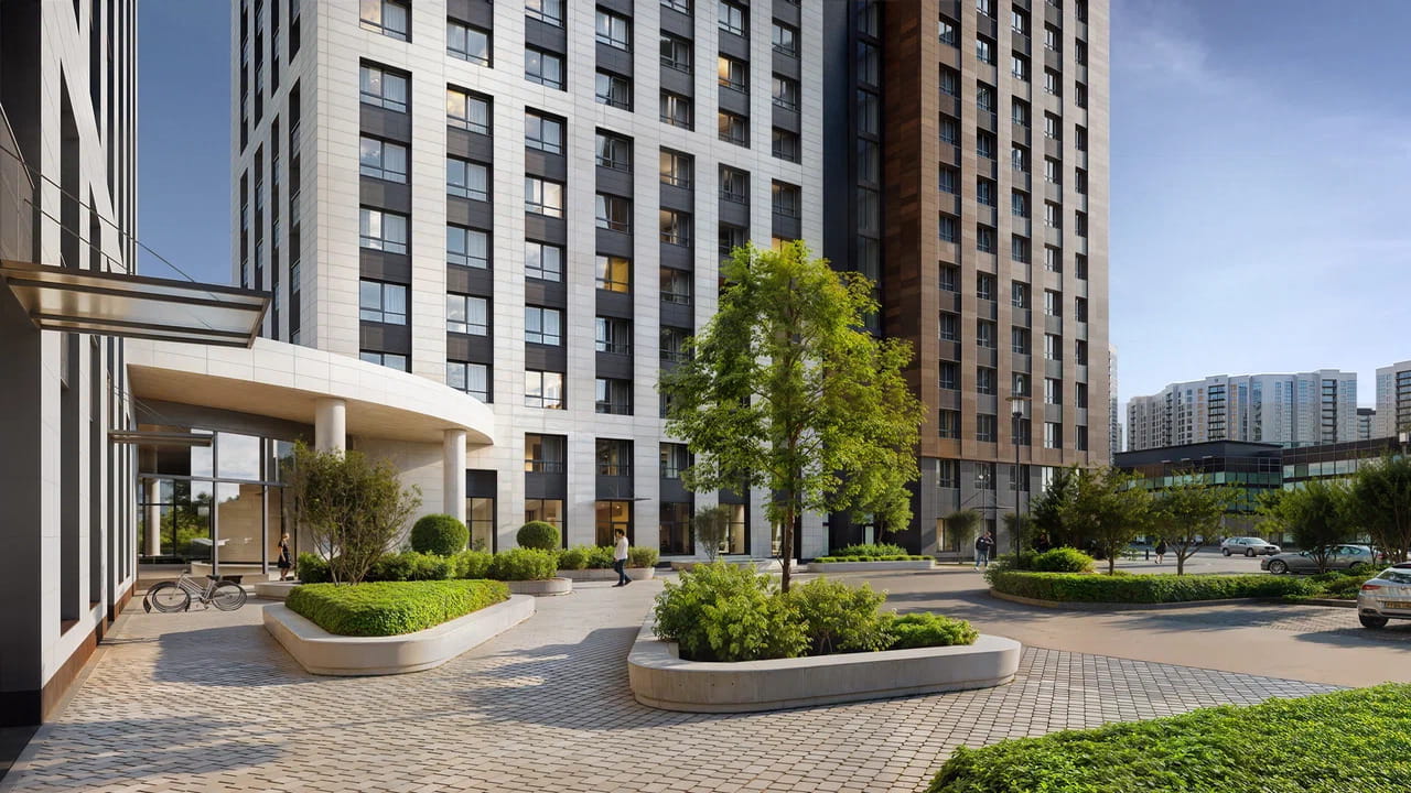 Жилой квартал ориентирован на семейных покупателей. В нем представлены только полноценные квартиры с одним, двумя или тремя комнатами, без студий. Планировки включают просторные кухни-гостины, мастер-спальни, гардеробные и кладовые, что обеспечивает комфортное пространство для проживания всей семьи.