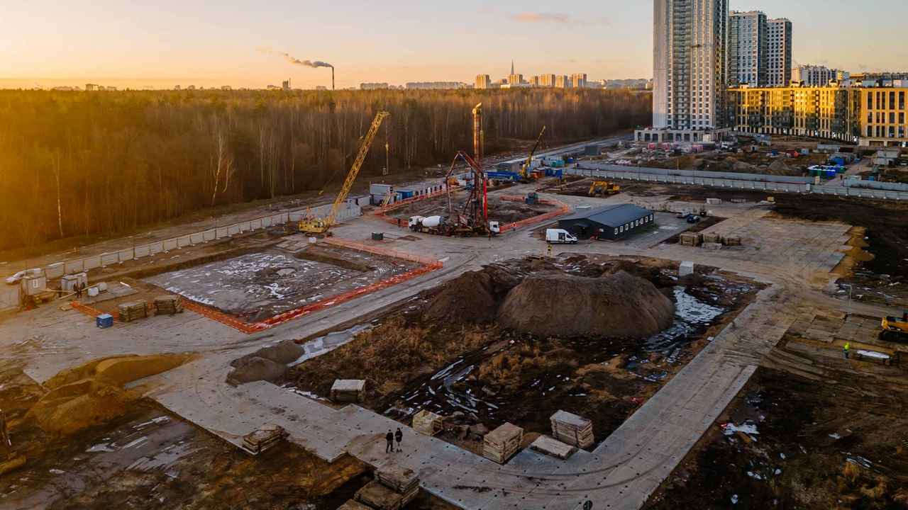 Начались работы по устройству свайных полей. Ведется подготовка к возведению конструкций -1 уровня. Завершено устройство площадок для складирования строительных материалов и оборудования.